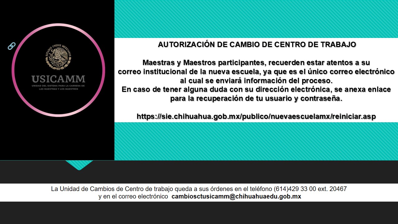 COMUNICADO CAMBIOS DE CENTRO DE TRABAJO