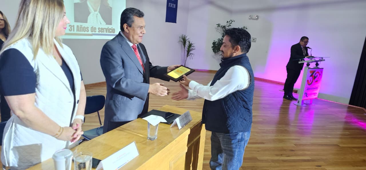 En el marco del 32 aniversario del Colegio de Estudios Científicos y Tecnológicos del Estado de Chihuahua (CECyTECH), se efectuó un acto de reconocimiento a trabajadoras y trabajadores con más de tres décadas de servicio, además se reafirmó el compromiso de la institución con su comunidad educativa y con la formación de nuevas generaciones de talento chihuahuense.