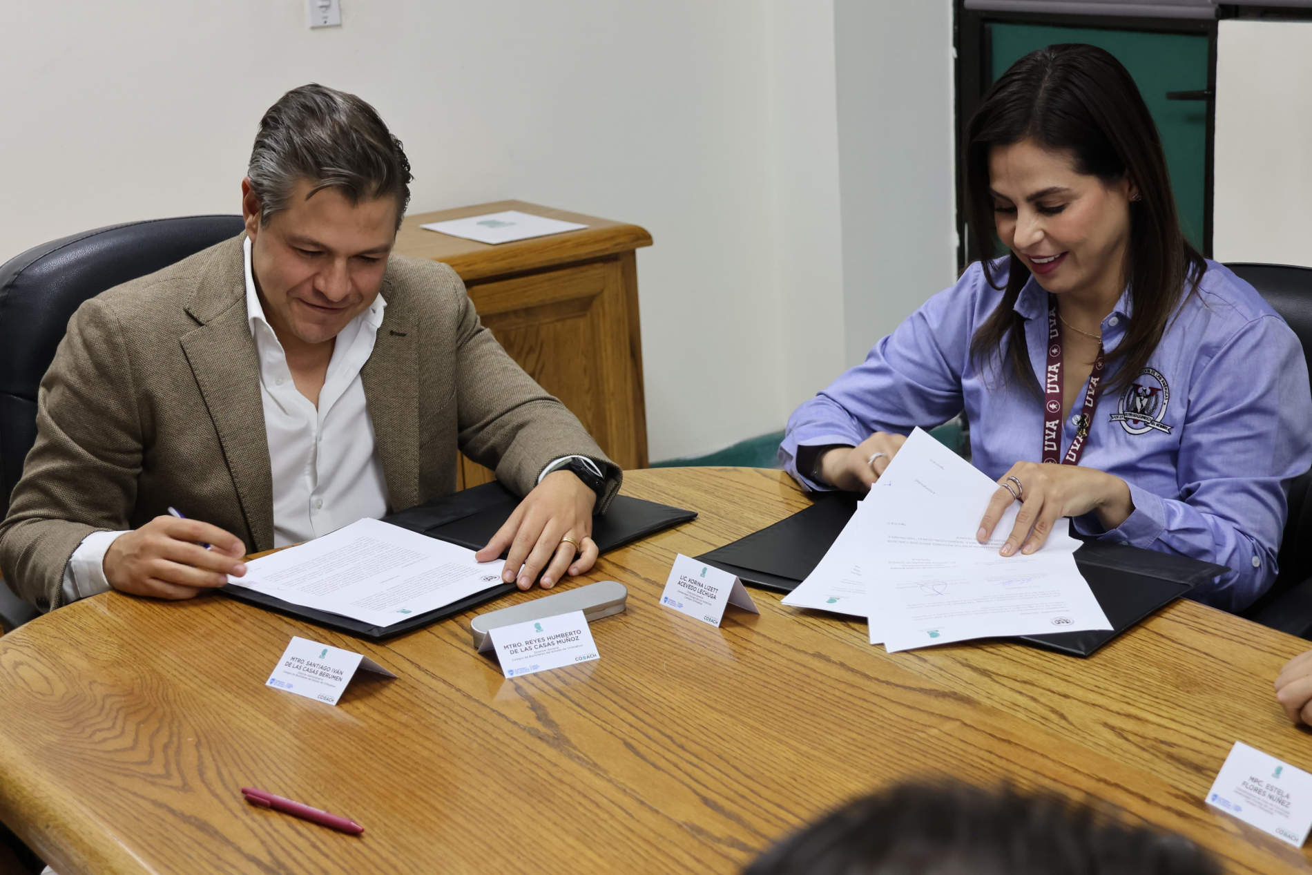 El acuerdo fue firmado por el director general del Cobach, Reyes Humberto de las Casas Muñoz, y la directora general de la Universidad Vizcaya de las Américas, Korina Lizett Acevedo Lechuga.