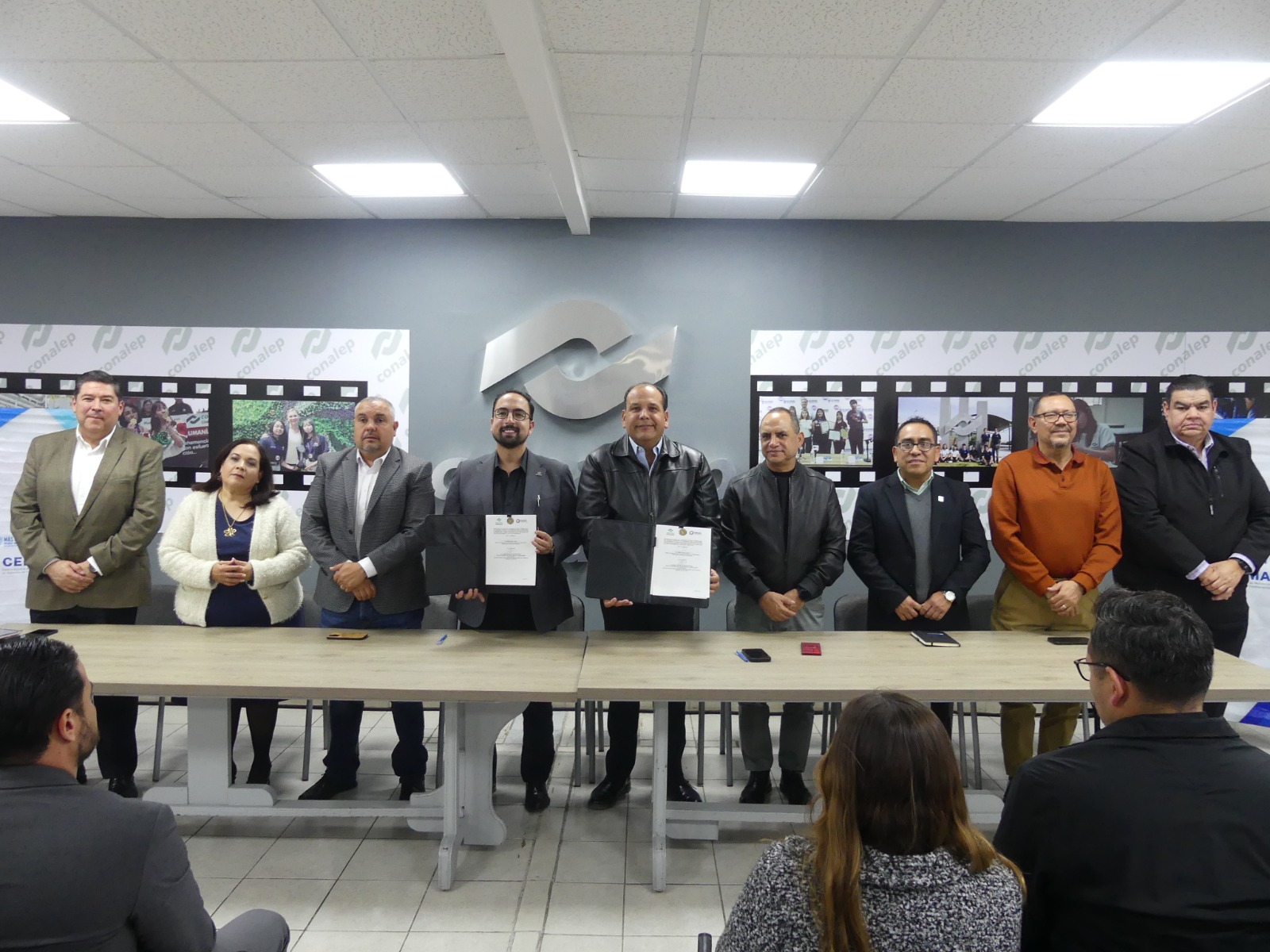 La firma estuvo a cargo del director general del Conalep, Omar Bazán Flores y el director del Cemasc, Daniel Terrazas; como testigo de honor asistió el diputado federal, Noel Chávez Velázquez, así como las y los titulares de los diferentes planteles de este subsistema educativo.