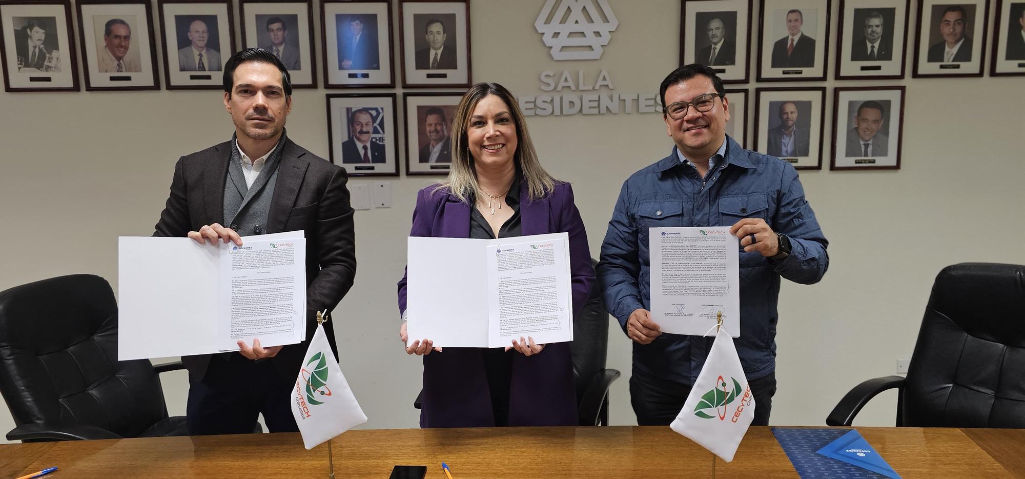 Con el objetivo de fortalecer la formación académica y técnica de la juventud chihuahuense, el Colegio de Estudios Científicos y Tecnológicos del Estado de Chihuahua (CECyTECH) firmó un convenio de colaboración con la Confederación Patronal de la República Mexicana (Coparmex).