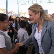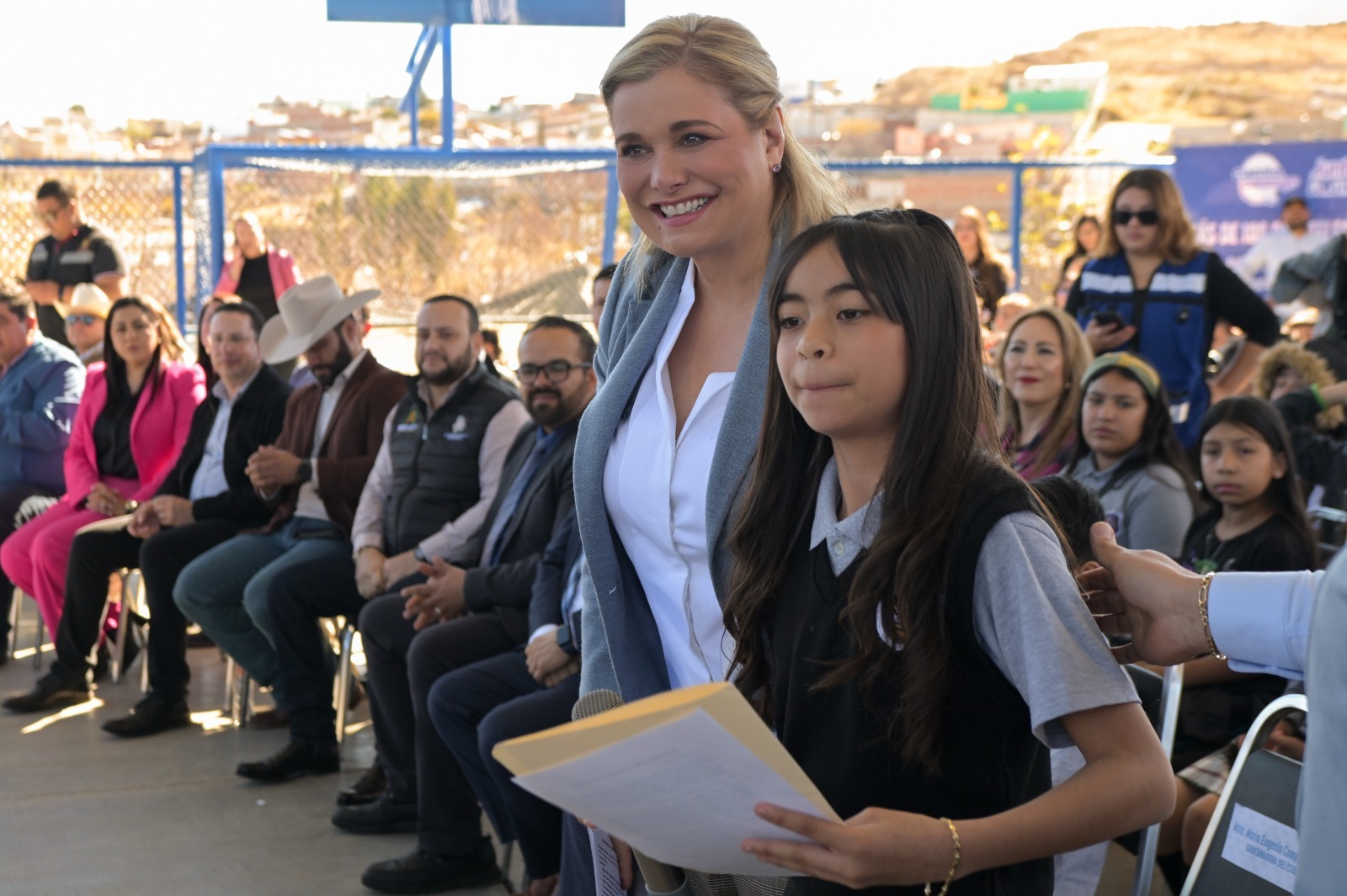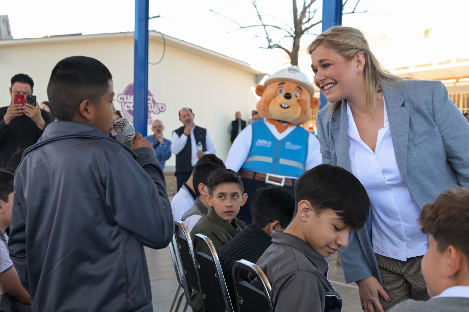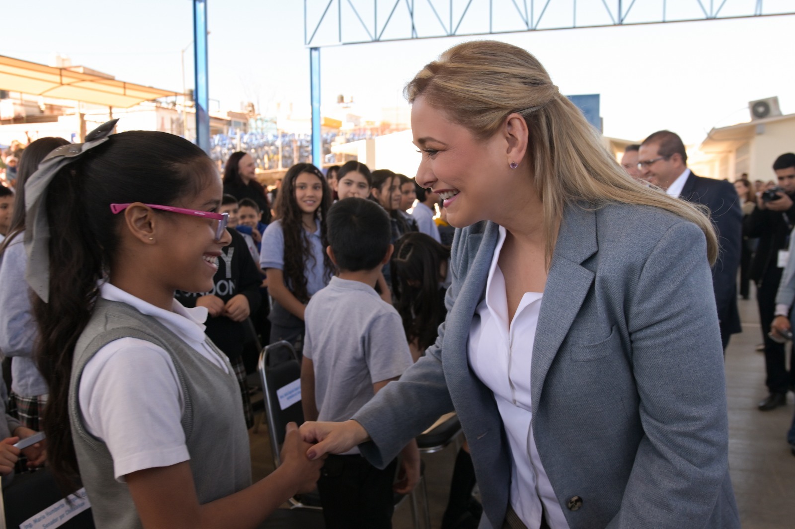 La mandataria afirmó a los alumnos de la escuela primaria Estatal “Insurgentes”, donde se efectuó la ceremonia, que la intención de su Gobierno es que puedan cumplir sus sueños, porque son valiosos.