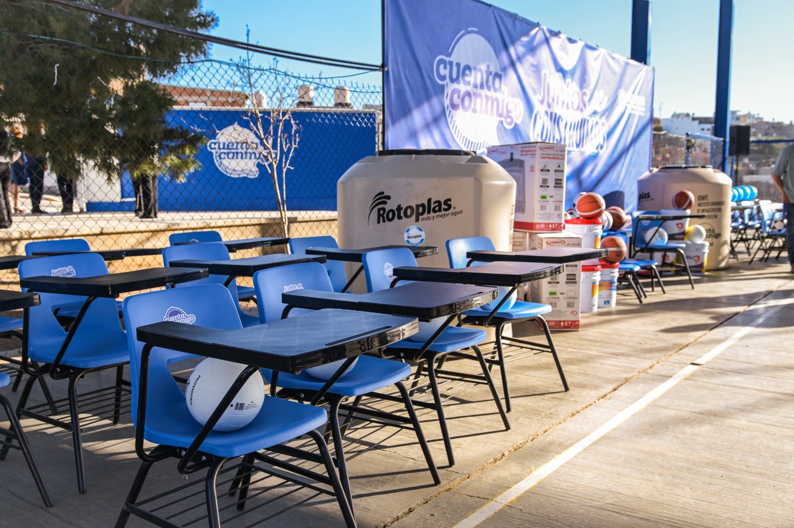 Entre los apoyos, en los que se hizo una inversión superior a los 2 millones de pesos se incluyen sillas, butacas, luminarias, aires acondicionados, pintura e impermeabilizante, que se distribuirán en planteles de Guachochi, Rosario, Coronado, Matamoros y Parral, entre otros.