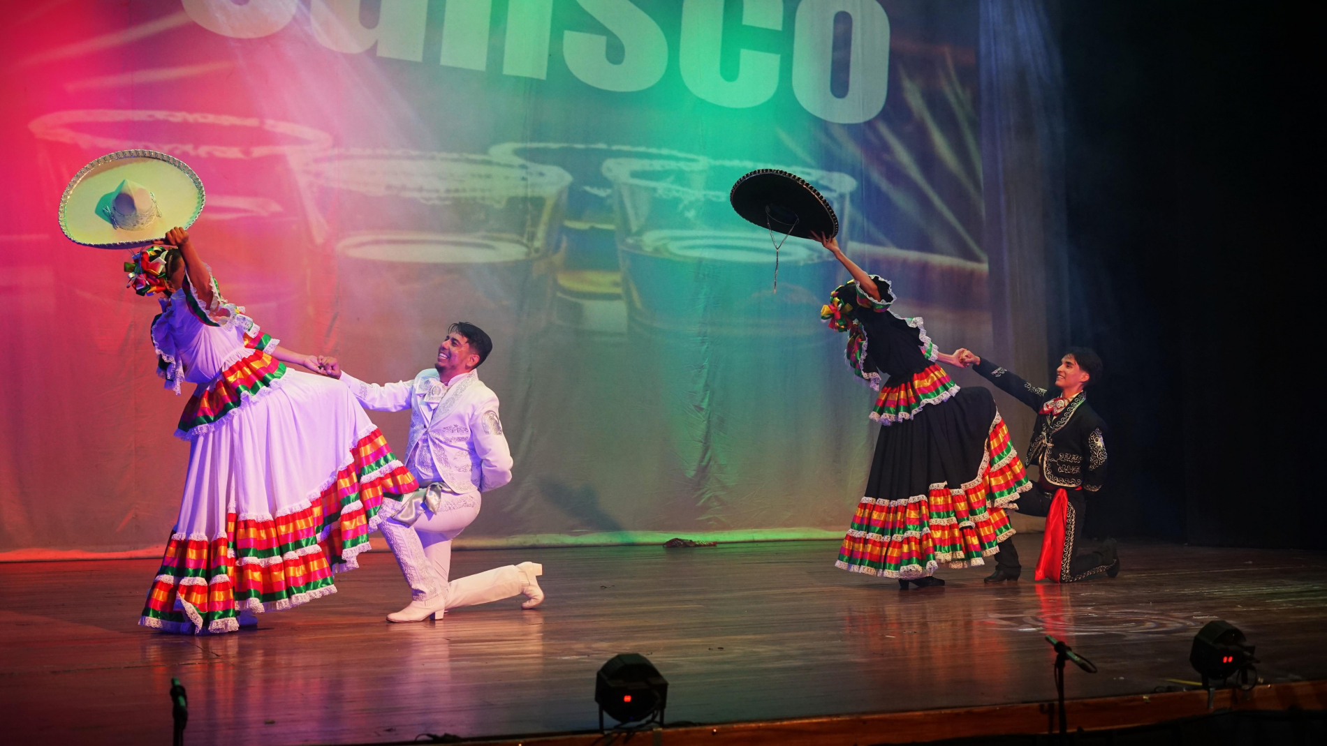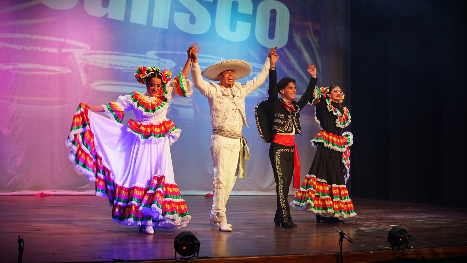 El grupo universitario, dirigido por la instructora Diana Realivazquez, presentó dos números musicales; inició con polkas de Chihuahua y posteriormente ofreció una interpretación del baile representativo de Jalisco, recibiendo el aplauso y reconocimiento del público asistente.