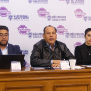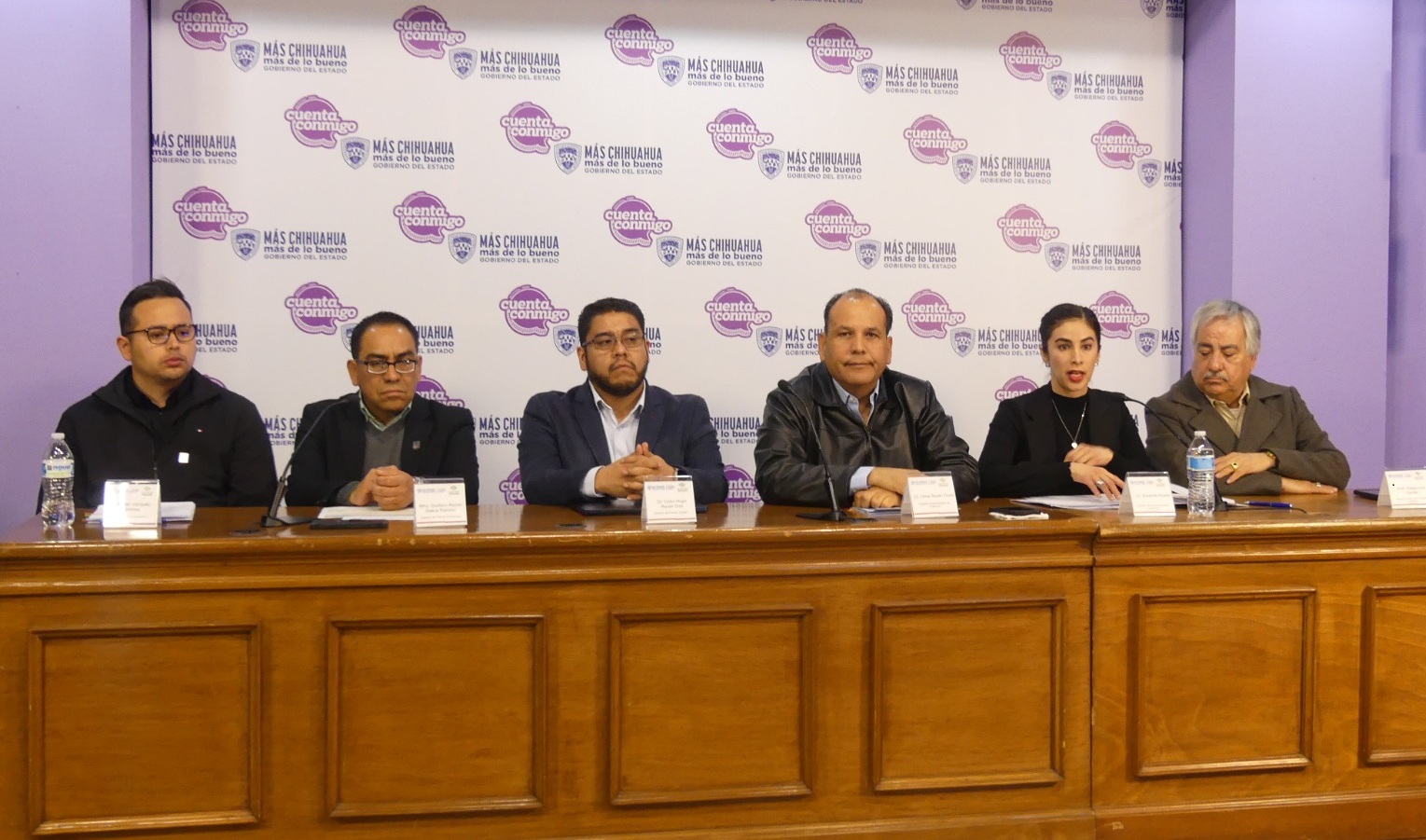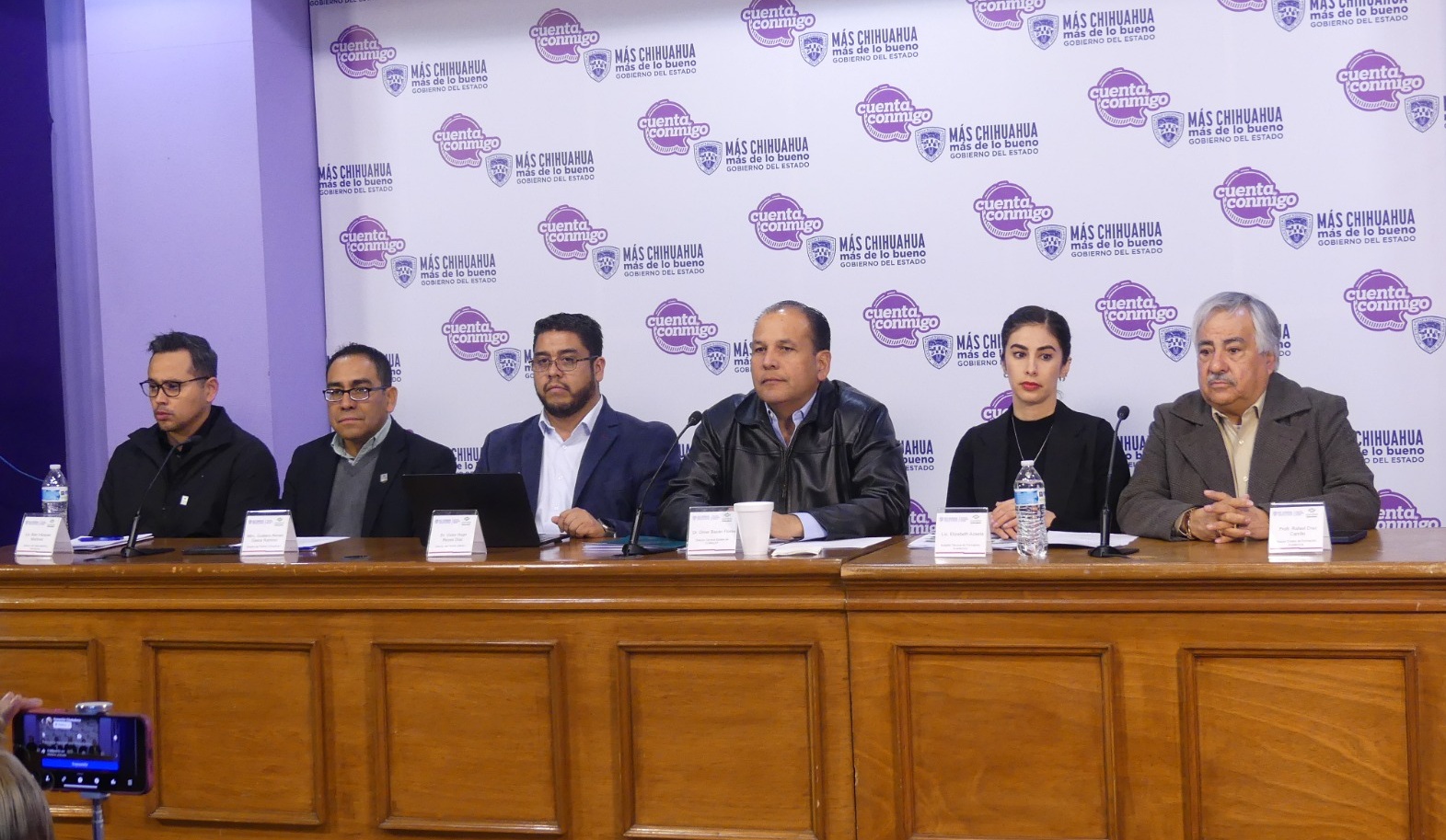 Durante la conferencia de prensa el titular del Conalep estuvo acompañado por Víctor Hugo Reyes Díaz, director del plantel Juárez I; Gustavo Alonso Gasca Ramírez, director del plantel Chihuahua I; Rafael Díaz Carrillo, director estatal de Formación Académica; Elizabeth Azaeta, subjefa técnica de Formación Académica; y Alan Vázquez Martínez, director de Capacitación y Planeación.