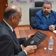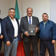 El secretario de Educación y Deporte, Francisco Hugo Gutiérrez Dávila, recibió de manos de una comitiva representativa de la Sección 42 del Sindicato Nacional de Trabajadores de la Educación (SNTE), el informe de las propuestas del Magisterio Estatal para fortalecer el Marco de Convivencia Escolar.